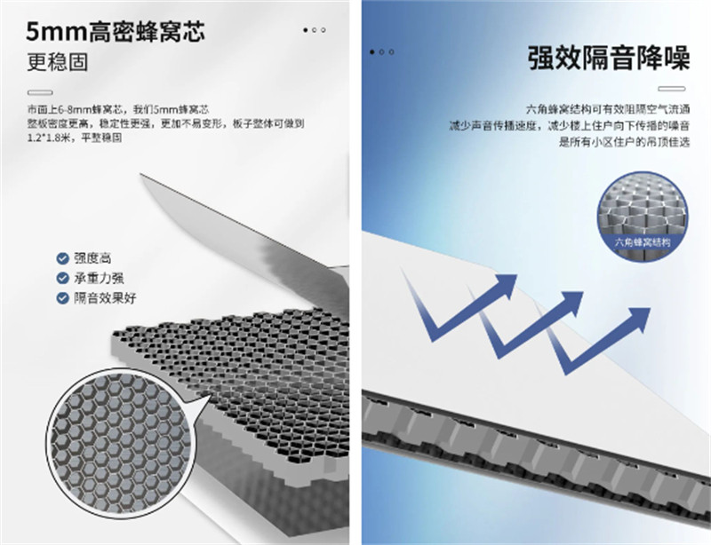 顶上逍遥大板采用5mm蜂窝芯结构,强度更高不易变形,还具有防水防潮、隔音降噪、防划阻燃、易清洁等特点,多种规格尺寸满足不同空间搭配,可适用于全屋空间,为你带来自由广阔的舒适家居享受。