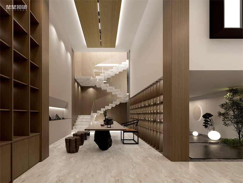 温润木色,绘就简约质感美学,朗阔空间,成就居家舒适度,370㎡现代轻奢别墅在时光温润流转的平和环境中清灵而沉静的精神和气度被无声滋养,让空间充满温暖的感染力 。