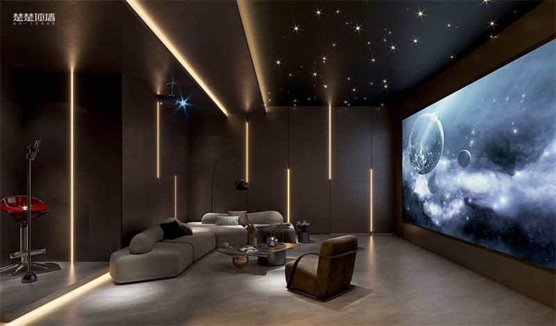 高级灰配色+星空顶,给人一种干净清冷,但是又温馨的矛盾感,不管从哪个角度看都是高级感满满,不需要把天上的星星摘下就可以拥有满屋繁星,不需要华丽繁杂的灯具,就能实现各种应用场景光色温和亮度变换。