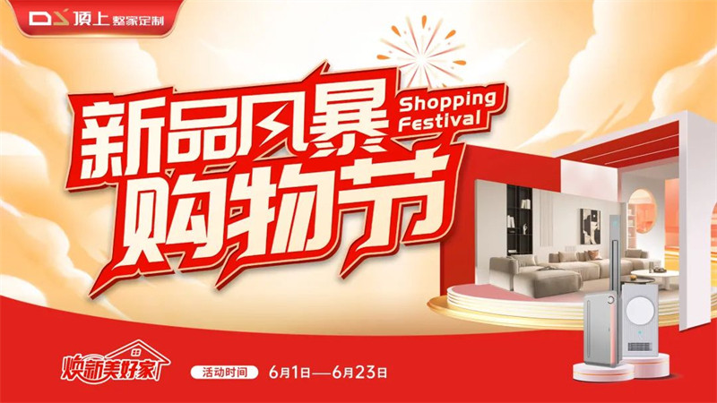 顶上6.18“新品风暴购物节”推出高灵活度整家套餐,8套精搭组合,卫浴、阳台、背景墙一站式搞定。还有人气电器秒杀、现场好礼放送,热门套餐助力等多重惊喜,优惠力度空前。