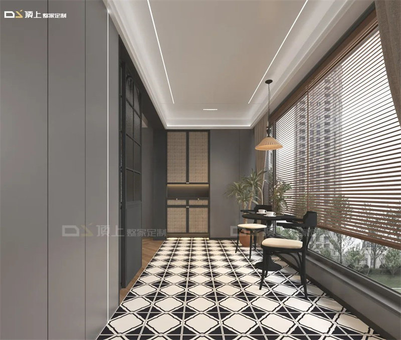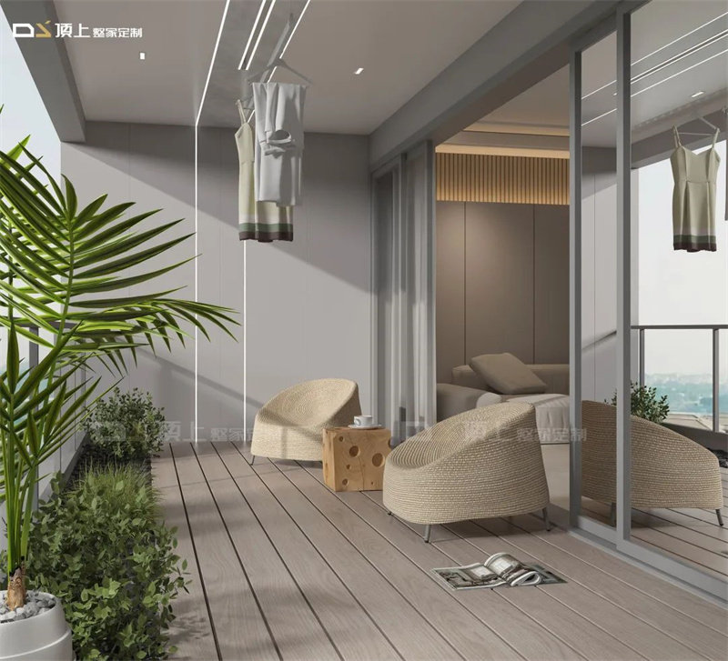 顶部空间可以选择顶上MAX印象大板+一线天智能音控隐形晾衣机这对最佳CP。全屏顶上空间延伸阳台尺度,隐形晾衣机解放双手的同时,还能随时完全隐形释放更多空间。